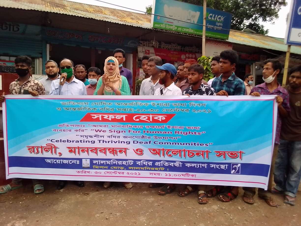 বৃহস্পতিবার (৩০ সেপ্টেম্বর) সকাল ১১টায় লালমনিরহাট জেলা শহরের প্রাণকেন্দ্র মিশন মোড় চত্ত্বরে লালমনিরহাট বধির প্রতিবন্ধী কল্যাণ সংস্থার আয়োজনে জাতিসংঘ ঘোষিত আন্তর্জাতিক ইশারা ভাষা দিবস ও আন্তর্জাতিক বধির সপ্তাহ-২০২১ রালি, মানববন্ধন ও আলোচনা সভা অনুষ্ঠিত হয়।