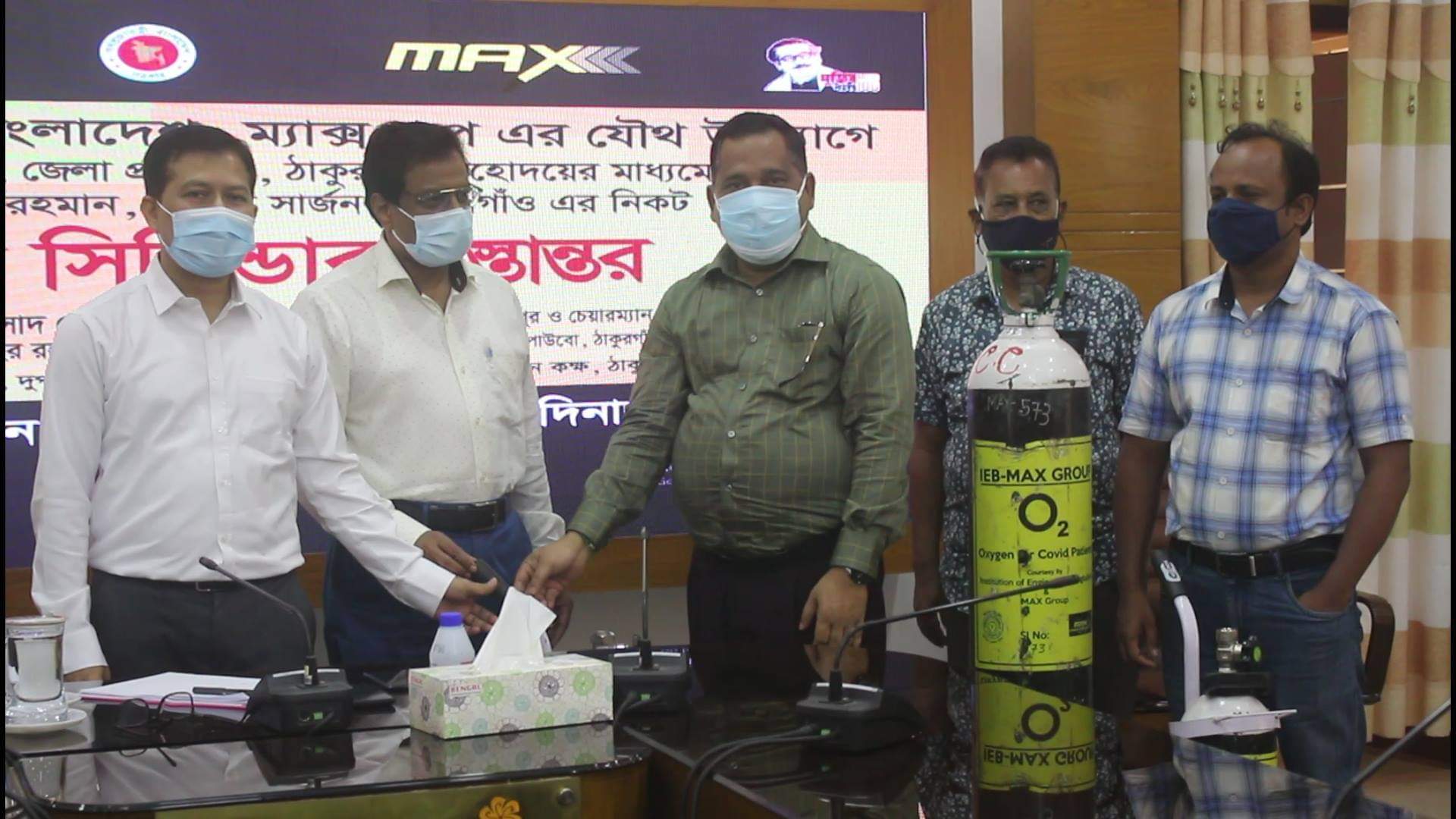 করোনা মোকাবেলায় ইঞ্জিনিয়ার্স ইনস্টিটিউশন বাংলাদেশ (আইইবি) ও মাক্স গ্রুপের পক্ষ থেকে ঠাকুরগাঁও জেলা প্রশাসক মাহবুবুর রহমানের কাছে ৪০টি অক্সিজেন সিলিন্ডার হস্তান্তর করা হয়েছে। আজ মঙ্গলবার দুপুরে জেলা প্রশাসক সম্মেলন কক্ষে আলোচনা সভা শেষে অক্সিজেন সিলিন্ডারগুলো হস্তান্তর করেন আইইবি ও ম্যাক্স গ্রুপের পক্ষে পানি উন্নয়ণ বোর্ড রংপুর বিভাগের প্রধাণ প্রকৌশলী জ্যোতি প্রসাদ ষোষ।