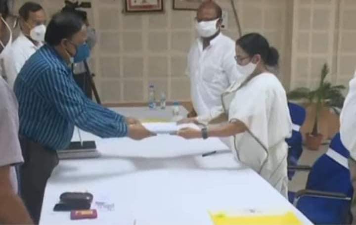 পশ্চিম বাংলার তৃনমূল দলের সুপ্রিমো এবং পশ্চিম বাংলার মুখ্যমন্ত্রী মমতা বন্দ্যোপাধ্যায় আসন্ন ফাকা হয়ে যাওয়া ভবানীপুর বিধানসভা কেন্দ্র থেকে তার মনোনয়ন পত্র জমা দিলেন তৃনমূল দলের হয়ে। তিনি গত বিধান সভা নির্বাচনে ভবানীপুর বিধানসভা কেন্দ্র থেকে জয়ী হয় তার দলের নেতা ও সাবেক পশ্চিম বাংলার বিদুৎ মন্ত্রী শ্রী শোভনদেব চট্টোপাধ্যায়। কিন্তু তিনি জয়ী হয়ে বিধান সভায় যাবার সময় দেখেন তার নেত্রী মমতা বন্দ্যোপাধ্যায় পশ্চিম বাংলার পূর্ব মেদিনীপুর জেলার নন্দীগ্রাম বিধান সভা কেন্দ্র থেকে বিজেপি প্রার্থী শ্রী শুভেন্দু অধিকারীর কাছে পরাজিত হয়। তিনি তার নেত্রী কে বিধান সভার সদস্য করার জন্য তিনি ভবানীপুর বিধানসভা কেন্দ্র থেকে বিধায়কের পদ থেকে পদত্যাগ করেন। যার ফলে উপনির্বাচন অনিবার্য হয়ে পড়ে। এবং মমতা বন্দ্যোপাধ্যায় কে পশ্চিম বাংলার মুখ্যমন্ত্রী হিসেবে দায়িত্ব পালন করতে গেলে পশ্চিম বাংলার যে কোন বিধানসভা কেন্দ্র থেকে জিতে আসতে হবে। নতুবা তাঁর ছয়মাসের বেশি পশ্চিম বাংলার মুখ্যমন্ত্রী হিসেবে দায়িত্ব পালন করতে পারবেন না। তাই আজ আগামী নির্বাচনে, ২৯,শে, অক্টোবর মাসে তাকে ভবানীপুর বিধানসভা কেন্দ্র থেকে জিতে আসতে হবে। আজ তার মনোনয়ন পত্র জমা দেন। তার সাথে ছিলেন পশ্চিম বাংলার তৃনমূল দলের নেতা ও মন্ত্রীরা। তিনি মনোনয়ন পত্র জমা দিয়ে বের হয়ে জনগণের উদ্দেশ্যে করে আর্শিবাদ চান। এবং পায়ে হেঁটে তিনি জনগণের উদ্দেশ্যে হাত নাড়াতে থাকেন। তবে ভবানীপুর বিধানসভা কেন্দ্র উপনির্বাচন কে কেন্দ্র করে কলকাতা হাইকোর্টে রিট আবেদন জমা পড়েছে নির্বাচন স্থাপিত করার জন্য। তার শুনানি শুরু হবে আগামী সোমবার। এবং ভবানীপুর বিধানসভা কেন্দ্রে ভারতের জাতীয় কংগ্রেস কোন প্রার্থী দেবে না। এখানে সি পি আই এম ও বিজেপি প্রার্থী দেবে বলে জানিয়েছেন। তবে তাদের প্রার্থী কে হবে এখন পর্যন্ত জানা যায়নি। ভবানীপুর বিধানসভা কেন্দ্রের মনোনয়ন পত্র জমা দেবার শেষ দিন, আগামী, ১৬, ই, অক্টোবর।।