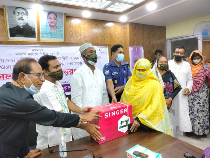 রোববার সকালে দিবস উপলক্ষে সাত জন প্রশিক্ষন প্রাপ্ত দরিদ্র অসহায় ও দুঃস্থ মহিলার মধ্যে সেলাই মেশিন বিতরণ করা হয়েছে।