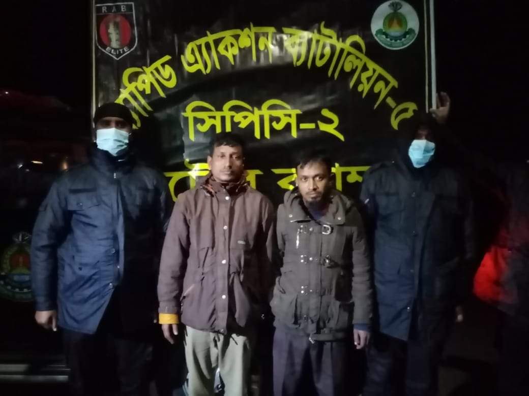 আটককৃতরা হলো, নওগাঁ সদর উপজেলার শিমুলিয়া গ্রামের মৃত ইয়াচিন প্রামানিকের ছেলে শাহজাহান আলী প্রামানিক (৩৭) ও একই গ্রামের আব্দুল হামিদের ছেলে সাজদুল ইসলাম (৩৩)।