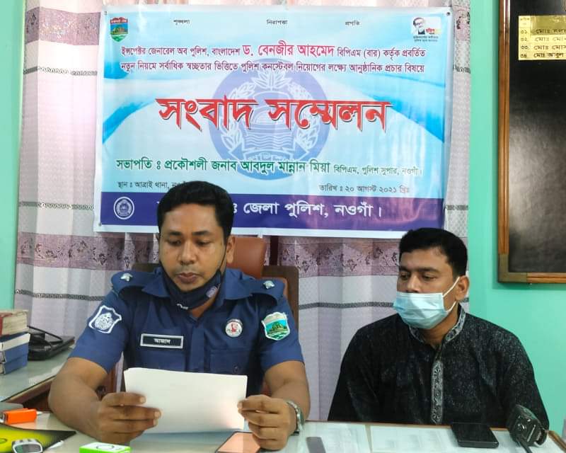 শুক্রবার সকালে স্বচ্ছতার সাথে পুলিশের কনস্টেবল নিয়োগের লক্ষ্যে নওগাঁ জেলা পুলিশ কর্তৃক নেওয়া ১৪ টি লিখিত নির্দেশনা নিজ কার্যালয়ে সাংবাদিকদের পাঠ করে শোনান ওসি আবুল কালাম আজাদ। চাকুরী প্রার্থী ও তার অভিভাবকদের দালালের হাত থেকে বাঁচতে পরামর্শ্বের জন্য ওসি তার সাথে যোগাযোগ করতে বলেন।