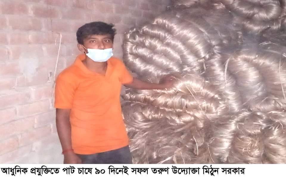আধুনিক কৃষির ধারণা থেকে নিজের উদ্ভাবিত পদ্ধতিতে ভারতের বারি মহারাষ্ট্র-১ জাতের পাট চাষ করে মাত্র ৯০ দিনে সফল হয়েছে তরুণ উদ্যোক্তা মিঠুন সরকার (২৩)। সে উপজেলার সন্তোষনগর গ্রামের মৃত দিলীপ সরকারের ছেলে। ৩০ জুন ২০২০ এ লিভার জনিত সমস্যা নিয়ে হাসপাতালে চিকিৎসাধীন অবস্থায় পরলোক গমন করেন। বাবার মৃত্যুতে তার উপর শোকের ছায়ালেগে থাকলেও মায়ের ভালোবাসার পরশে সংসারের হাল ধরতে হয় তাকে। তবুও তার পড়াশুনা থেমে যায়নি। বর্তমানে মিঠুন সরকার বাংলাদেশ উন্মুক্ত বিশ্ববিদ্যালয়ের যশোর আঞ্চলিক কেন্দ্রের ঝিনাইদহ এগ্রিকালচারাল ট্রেনিং ইন্সটিটিউটে 'ব্যাচেলর অব এগ্রিকালচারাল এডুকেশন" এ অধ্যায়নরত। পড়াশুনার পাশাপাশি বাবার রেখে যাওয়া ৬৯ শতাংশ দু ফসলী জমিতে তিন ফসলীতে পরিণত করে ক্রমাগতই আর্থিক ভাবে লাভবান হচ্ছে এবং এলাকার মধ্যে একজন সফল উদ্যেক্তা হিসেবে পরিচিতি পেয়েছে। সে লাইনিং পদ্ধতিতে পাটের বীজ বপন করে কাঙ্খিত ফলন ঠিক রেখে মাত্র ১২৫ দিনের পাট চাষকে ৯০ দিনে নিয়ে এসে এলাকার মানুষের মাঝে তাক লাগিয়ে দিয়েছেন। লাইনিং পদ্ধতিতে তার জমিতে পাট চাষ করে শ্রমিক, সেচ এবং সার কম লাগে ও বিভিন্ন রোগ ও পোকার আক্রমণ কম হওয়ায় অন্যান্যদের চেয়ে বিঘাপ্রতি উৎপাদন ব্যয় কমেছে শতকরা ৫০ শতাংশ। এছাড়াও উৎপাদন হয়েছে বিঘাপ্রতি প্রায় ১২মণ পাট।