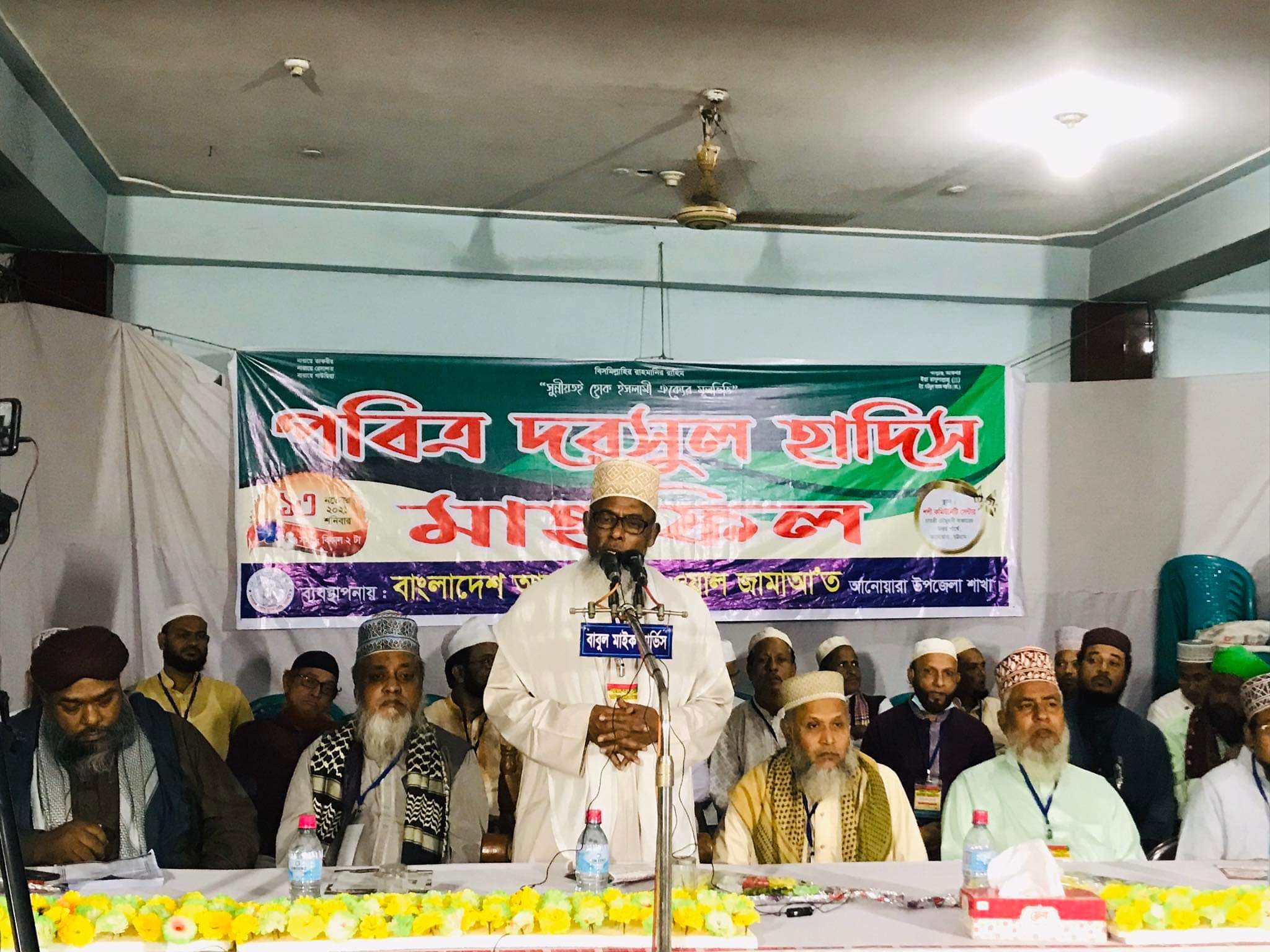 বাংলাদেশ আহলে সুন্নাত ওয়াল জামাআ'ত আনোয়ারা উপজেলা শাখার আয়োজনে পবিত্র দরসূল হাদীস মাহফিল সম্পন্ন হয়েছে।১৩ নভেম্বর (শনিবার) বিকালে চাতরী চৌমুহনী বাজারস্থ শশী কমিউনিটি সেন্টারে অনুষ্ঠিত হয়।বাংলাদেশ আহলে সুন্নাত ওয়াল জামাআ'ত আনোয়ারা উপজেলা শাখার সভাপতি মাওলানা সেলিম উদ্দীন আনোয়ারী এর সভাপতিত্বে, উদ্বোধন হিসেবে উপস্থিত ছিলেন আহলে সুন্নাত ওয়াল জামাআ'ত চট্টগ্রাম বিভাগীয় সচিব স.ম হামেদ হোসাইন। উক্ত দরসূল হাদীস মাহফিলে প্রধান অতিথি হিসেবে বক্তব্য রাখেন বাংলাদেশ আহলে সুন্নাত ওয়াল জামাআতের প্রেসিডিয়াম সদস্য শায়খুল হাদীস অধ্যক্ষ মাওলানা মুহাম্মদ জয়নাল আবেদীন জুবাইর।প্রধান বক্তা হিসেবে উপস্থিত ছিলেন চট্টগ্রাম দক্ষিণ জেলা আহলে সুন্নাত ওয়াল জামাআতের সভাপতি অধ্যক্ষ মাওলানা এস.এম ফরিদ উদ্দীন।দরস পেশ করেন চট্টগ্রাম নেছারিয়া কামিল মাদ্রাসার শায়খুল হাদীস মাওলানা মুহাম্মদ এনামুল হক সিকদার,বাংলাদেশ আহলে সুন্নাত ওয়াল জামাআ'ত চট্টগ্রাম উত্তর জেলার সভাপতি অধ্যক্ষ মাওলানা হাসান রেজা আল কাদেরী।দরসূল হাদীস মাহফিলের শুরুতে স্বাগত বক্তব্য রাখেন মাহফিল প্রস্তুতি কমিটির সচিব মাওলানা মুহাম্মদ ইদ্রিস আল কাদের।এ সময় বাংলাদেশ আহলে সুন্নাত ওয়াল জামাআ'ত এর আনোয়ারা উপজেলা,ইউনিয়ন, ওয়ার্ড শাখার অসংখ্য নেতৃবৃন্দ, বহু ওলামায়ে কেরাম উপস্থিত ছিলেন।