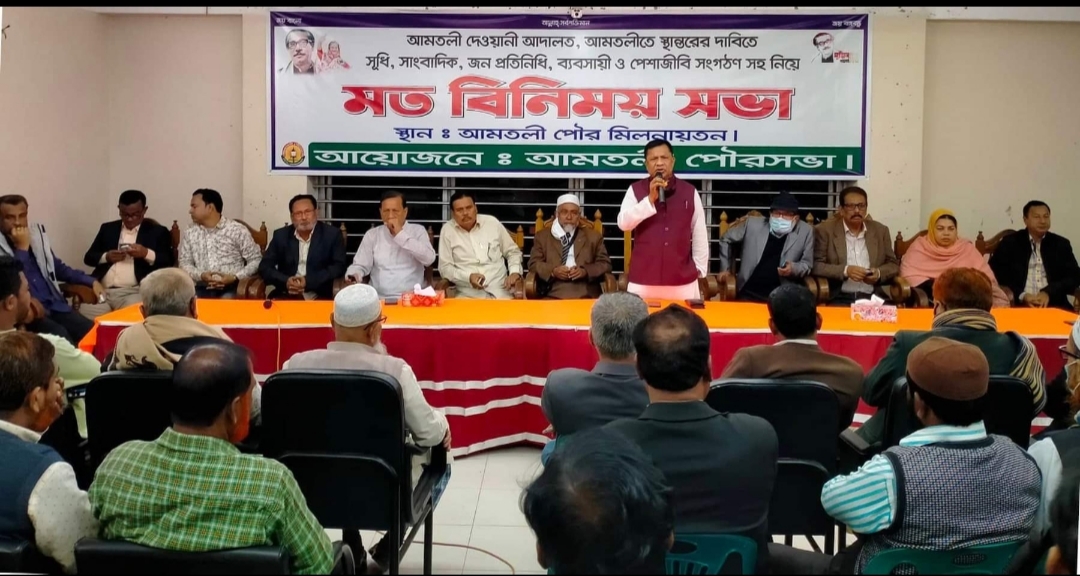 বরগুনার আমতলীতে দেওয়ানী আদালত পুনঃস্থাপনের দাবীতে পৌরসভার আয়োজনে সূধি, সাংবাদিক, জনপ্রতিনিধি, ব্যবসায়ী ও পেশাজীবি সংগঠনের নেতৃবৃন্দকে নিয়ে মতবিনিময় সভা অনুষ্ঠিত হয়েছে।