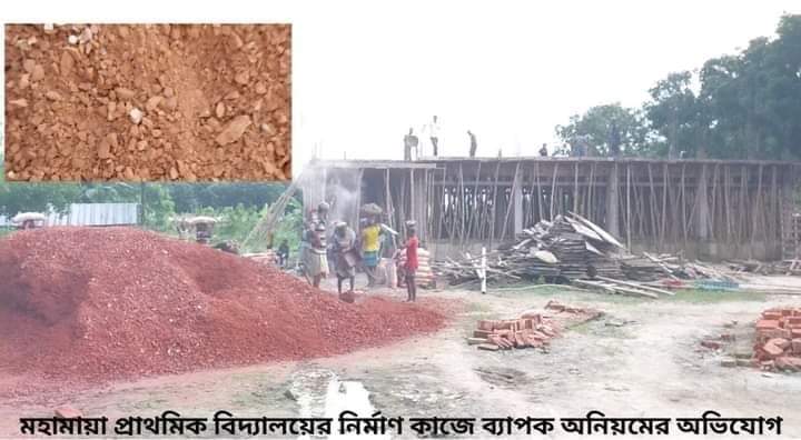 ঝিনাইদহ সদর উপজেলার মধুহাটি ইউনিয়নের মহামায়া প্রাথমিক বিদ্যালয়ে নতুন একাডেমিক ভবন নির্মাণ কাজে ব্যাপক অনিয়মের অভিযোগ পাওয়া গেছে। নির্মাণ কাজে ব্যবহার করা হচ্ছে নিম্নমানের সামগ্রী। ঠিকাদারি প্রতিষ্ঠানের কাজের মান খারাপ এবং নির্মাণ কাজেও করা হয়েছে অনিয়ম এমন অভিযোগ সচেতন এলাকাবাসীর। নিয়ম অনুযায়ী কার্যস্থলে নির্মাণ কাজের বিবরণ সম্বলিত সাইন বোর্ড দৃশ্যমান থাকার কথা থাকলেও তা টানানো হয়নি। ফলে এই কাজের স্বচ্ছতা ও জবাবদিহিতা প্রশ্নবিদ্ধ হচ্ছে। সরেজমিন দেখা যায়, নিম্নমানের ইট, খোয়া ও জংধরা রড দিয়ে নির্মাণ কাজ চলছে। স্কুলের অভ্যন্তরীণ ওয়াল নির্মাণ এবং ছাদ ঢালাই কাজে ব্যবহার করা হচ্ছে দুই-তিন নম্বর ও নম্বরবিহীন নিম্নমানের ইট এবং ইটের খোয়া। পা দিয়ে একটু জোরে চাপ দিলেই গুঁড়ো হয়ে যাচ্ছে ইটগুলো। বিষয়টি গনমাধ্যমকর্মীরা উপজেলা ইঞ্জিয়ারকে জানালে তিনি কাজ বন্ধ করে দেন। তখন বিকাল আনুমানিক ৪ঃ২০ মিনিট। তবে গনমাধ্যমকর্মীরা ফিরে এলে ছাদ ঢালাই সম্পন্য করেন ঠিকাদারি প্রতিষ্ঠানের দ্বায়িত্ব থাকা আব্দুল মালেক। স্কুলের প্রধান শিক্ষক এবং স্কুল পরিচালনা কমিটির সভাপতির স্বেচ্ছাচারিতা আর নীরব ভূমিকার কারণে ঠিকাদারি প্রতিষ্ঠান নোংরা, নিম্নমান ও নম্বরবিহীন এসব আমা ইট ব্যবহার করে কাজ করছেন বলে অভিযোগ। নির্মাণ কাজ তদারকির জন্য সংশ্লিষ্ট বিভাগের কোন কর্মকর্তা-প্রকৌশলীকে সেখানে পাওয়া যায়নি। স্থানীয়রা জানান, সিডিউলে উন্নতমানের ইট, পাথর ও রড, সিমেন্ট দিয়ে কাজ করার নিয়ম রয়েছে। কিন্তু ঠিকাদারি প্রতিষ্ঠান অসাধু কর্মকর্তা, স্কুলের প্রধান শিক্ষক ও সভাপতির সাথে আঁতাত করে নিম্নমানের ইট, পাথর, সমদূরত্বের রড না দেয়া এবং পরিমাণে কম সিমেন্ট ও অতিরিক্ত পরিমাণে বালি ব্যবহার করেছে বলে গ্রামবাসি অভিযোগ করেন। ঠিকাদারি প্রতিষ্ঠানের দায়িত্বে থাকা আব্দুল মালেক নিজেকে সেচ্ছাসেবকলীগ নেতা পরিচয় দিয়ে বলেন সন্ধায় অফিসে দেখা করেন, সেখানে কথা হবে। মহামায়া মাধ্যমিক বিদ্যালয়ের প্রধান শিক্ষক আলী আশরাফ রিপনের কাছে স্কুল ভবন নির্মাণ কাজের ব্যাপারে জানতে চাইলে তিনি বলেন, কাজের গুনগত মান তেমন খারাপ ছিলনা। খোয়ার মান একটু খারাপ ছিল।পরে ইঞ্জিয়ারের পরামর্শ অনুযায়ী কাজ হচ্ছে। ঝিনাইদহ সদর উপজেলা প্রকৌশল অধিদপ্তরের প্রকৌশলী আহসান হাবীব বলেন, ১ কোটি ৩ লাখের বরাদ্দ,ঠিকাদারি প্রতিষ্ঠান "মুগ্ধ বিল্ডার্স" কাজটি করছেন।কাজের মান ভাল,তবে প্রথমে কিছুটা অনিয়ম ছিল। তাছাড়া তেমন কোন অমিয়ম হয়নি ওখানে দুটি গ্রুপ আছে যার কারনে সমস্যা। গনমাধ্যম কর্মীরা কাজের অনিয়মের ব্যাপারে উপজেলা প্রকৌশল অফিসে ফোন করলে কাজ বন্ধ করে দেওয়া হয়েছিল কেন? এমন প্রশ্নের 