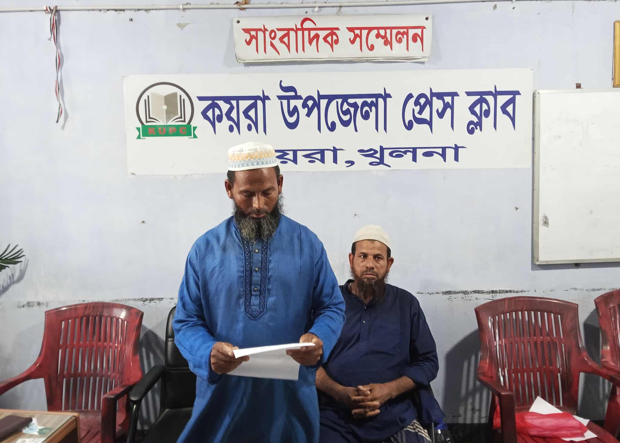 ১১ সেপ্টেম্বর বৃহস্পতিবার বেলা ১১ টায় কয়রা উপজেলা প্রেসক্লাবে সংবাদ সম্মেলনে লিখিত বক্তব্যে তিনি বলেন, কয়রা নদী জলমহলটি বাৎসরিক ৪ লক্ষ ৮০ হাজার টাকার রাজস্বের বিপরীতে বাংলা ১৪২৮ সন হইতে ১৪৩৩ সন পর্যন্ত ৬ বছরের দির্ঘ মেয়াদী হিসাবে আমাদের সমিতির অনুকূলে ইজারা গ্রহত করি। পরবর্তীতে আমার প্রতিবেশি খড়িয়া মঠবাড়ি গ্রামের মৃত হোসেন আলী সানার পুত্র সিরাজুল সানাকে আমাদের সমিতির পক্ষ থেকে রক্ষনাবেক্ষন ও অংশীদারিত্ব হিসাবে বাৎসরিক ৬ লক্ষ টাকা প্রদানের শর্তে সিরাজুল ইসলামকে জলমহলটি প্রদান করা হয়। কিন্তু বিগত ২ বছর যাবৎ সে আমাদের সমিতির অনুকূলে যে রাজস্ব দেওয়ার কথা ছিল তা না দিয়ে বিভিন্নভাবে তালবাহনা করতে থাকে। সে প্রভাবশালী হওয়ায় আমরা তার বিরুদ্ধে কথা বলতে সাহস পাচ্ছিনে। সংবাদ সম্মেলনে তিনি আরও বলেন, বিগত ২ বছরের ১২ লক্ষ টাকা তার কাছে পাওনা রয়েছে। সেটি চাইতে গেলে টাকা না দিয়ে আমাদেরকে তাড়িয়ে দেয়। শুধু তাই নয় সে আমাদেরকে হুমকি ধামকি অব্যাহত রেখেছে। এমনকি ক্ষতি করার জন্য পায়তারা চালাচ্ছে। আমরা নিরুপায় হয়ে তার বিরুদ্ধে কয়রা থানায় একটি সাধারণ ডায়েরী করি। যার নং-৪৫৩ তাং-১১-৯-২৫ ইং। সমিতির সাধারণ সম্পাদক সেরাজুল ইসলাম বলেন, ইতিপুর্বে আমাকে ভুল বুঝিয়ে প্রতিপক্ষ সিরাজুল ইসলাম ৩ শ টাকার একটি অলিখিত নন জুডিশিয়াল স্ট্যাম্পে স্বাক্ষর করে নেয়। আমরা পরবর্তীতে বিষয়টি বুঝতে পেরে গত ৯ আগস্ট উক্ত স্ট্যাম্পটিস বাতিল করার জন্য বিজ্ঞ নোটারী পাবলিক খুলনা হতে বাতিল বলিয়া ঘোষনা করি। সংবাদ সম্মেলনের মাধ্যমে আমাদের সমিতির বকেয়া ১২ লক্ষ টাকা পাইতে পারি তার জন্য প্রশাসনের সার্বিক সহযোগীতা কামনা করছি।