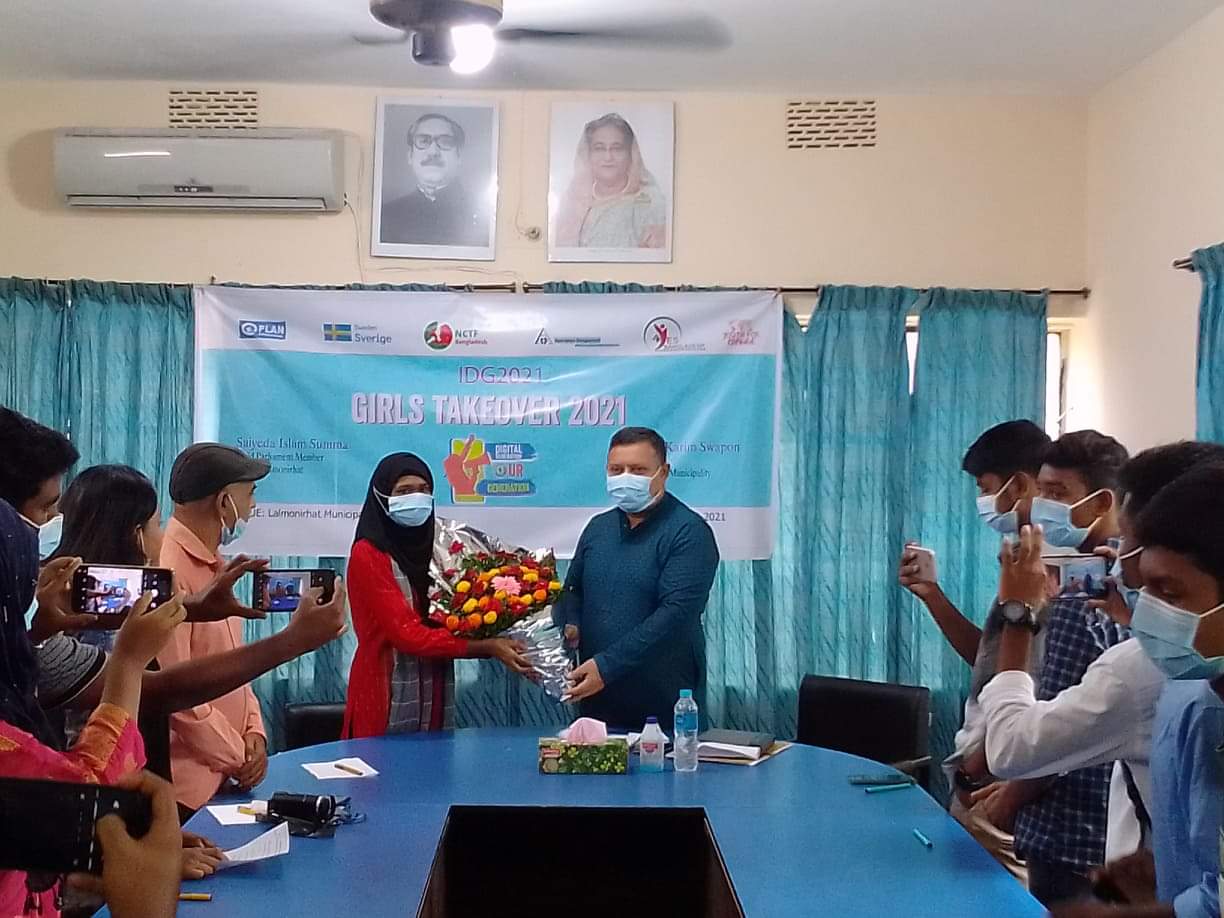 মঙ্গলবার (১৯ অক্টোবর) সকাল ১০টা ৩০মিনিটে মেয়রের রুমে প্ল্যান ইন্টারন্যাশনাল বাংলাদেশের গার্লস টেকওভার কর্মসূচির আয়োজন করে ন্যাশনাল চিলড্রেন'স টাস্ক ফোর্স (এনসিটিএফ) লালমনিরহাট জেলা শাখা।