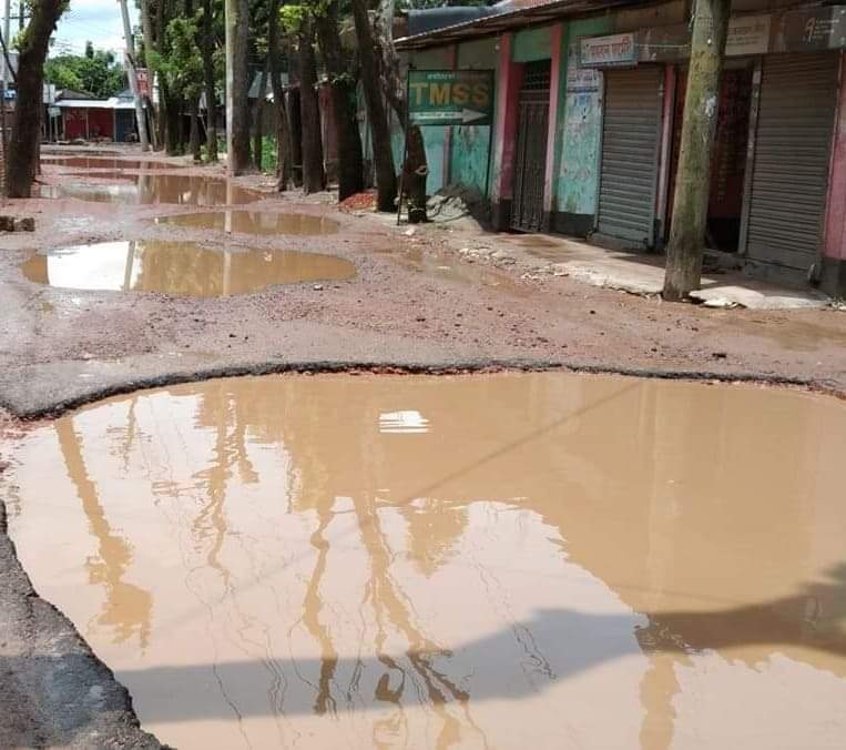 সামান্য বৃষ্টিপাত হলেই বৃষ্টির পানি জমে মরণ ফাঁদে পরিণত হয় রাস্তাটি।