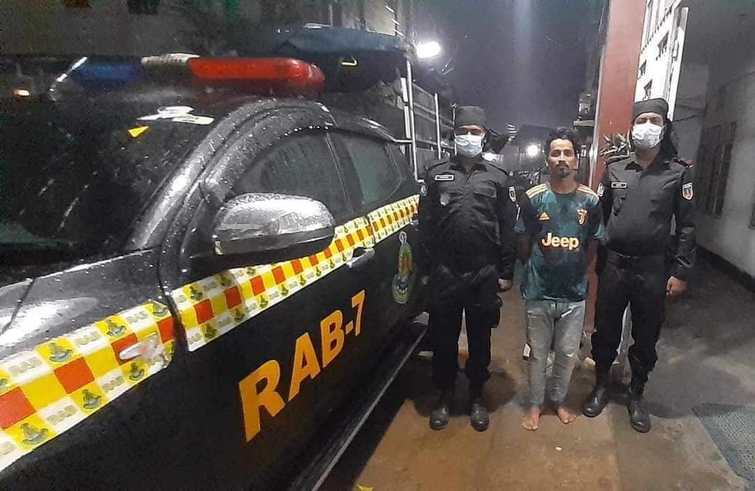 র্যাব-৭ এর অভিযানে ফেনী জেলার পরশুরামের সাতকুচিয়ায় শ্বশুরবাড়ির লোকজনের হাতে নির্যাতিতা গৃহবধূকে এসিড নিক্ষেপকারী এজাহারনামীয় প্রধান আসামি তারেক (২৪) আটক।