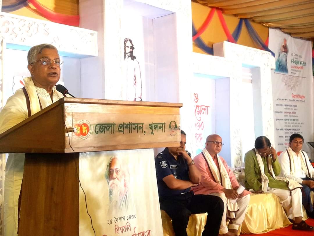 কবিগুরুর স্মৃতি বিজড়িত দক্ষিণডিহি আমাদের গর্ব, এর মাধ্যমে আমাদের সম্মান ও পরিচিতি সারা বিশ্বে বৃদ্ধি পেয়েছে।রবীন্দ্রনাথ ঠাকুর কোন অঞ্চল কোন গোষ্ঠীর কোন সম্প্রদায়ের নয় । তিনি গোটা বাঙালি জাতির, গোটা বিশ্বের কবি। তার লেখনীর মাধ্যমে বাঙালি জাতিকে বিশ্বের দরবারে স্থান করে দিয়েছে। এছাড়া রবীন্দ্রনাথ ঠাকুরের সৃষ্টি সম্ভাব ও পরিমানে ও বৈচিত্রে বিপুল। তার শ্বশুরবাড়ি রবীন্দ্র কমপ্লেক্সকে খুব শিগগিরই আধুনিক ও পূর্ণাঙ্গ কমপ্লেক্সে রূপ দেয়া হবে। খুলনা জেলা প্রশাসনের আয়োজনে ফুলতলার দক্ষিণডিহিতে বিশ্বকবি রবীন্দ্রনাথ ঠাকুরের স্মৃতি বিজড়িত শ্বশুরবাড়ি রবীন্দ্র কমপ্লেক্সে এ ৩ দিনব্যাপী ১৬২তম রবীন্দ্র জন্মজয়ন্তী ও লোকমেলা উদ্বোধনী অনুষ্ঠানে গতকাল ৮ই মে সোমবার বিকেলে বেলুন উড়িয়ে ও ফিতা কেটে তিন দিনব্যাপী অনুষ্ঠানমালার আনুষ্ঠানিক উদ্বোধন অনুষ্ঠানের করার সময় প্রধান অতিথি হিসাবে সাবেক মৎস্য ও প্রাণিসম্পদ মন্ত্রী নারায়ণ চন্দ্র চন্দ এমপি এসব কথা বলেন। খুলনা জেলার অতিরিক্ত জেলা প্রশাসক (শিক্ষা ও আইসিটি) মুকুল কুমার মৈত্র’র সভাপতিত্বে অনুষ্ঠিত আলোচনা সভায় সম্মানিত অতিথি ছিলেন সাংস্কৃতিক বিষয়ক মন্ত্রণালয়ের যুগ্ম-সচিব সুব্রত ভৌমিক। অনুষ্ঠানে স্বাগত বক্তৃতা করেন ফুলতলা উপজেলা নির্বাহী কর্মকর্তা খোশনূর রুবাইয়াৎ। শুভেচ্ছা বক্তৃতা করেন জেলা আওয়ামী লীগের সহ-সভাপতি বিএমএ সালাম, ওসি মোঃ আব্দুল হক, উপজেলা আ’লীগের ভারপ্রাপ্ত সাধারণ সম্পাদক মৃনাল হাজরা। প্রান্তজনের রবীন্দ্রনাথ ” শীর্ষক আলোচনা করেন খুলনা বিশ্ববিদ্যালয়ের সাবেক ট্রেজারার প্রফেসর সাধন রঞ্জন ঘোষ। অনুষ্ঠান উপস্থাপন করেন মিনা মিজানুর রহমান, অনুপম মিত্র ও ফারজানা ইয়াসমিন। অনুষ্ঠানের দ্বিতীয় পর্বে সাংস্কৃতিক অনুষ্ঠান অনুষ্ঠিত হয়।