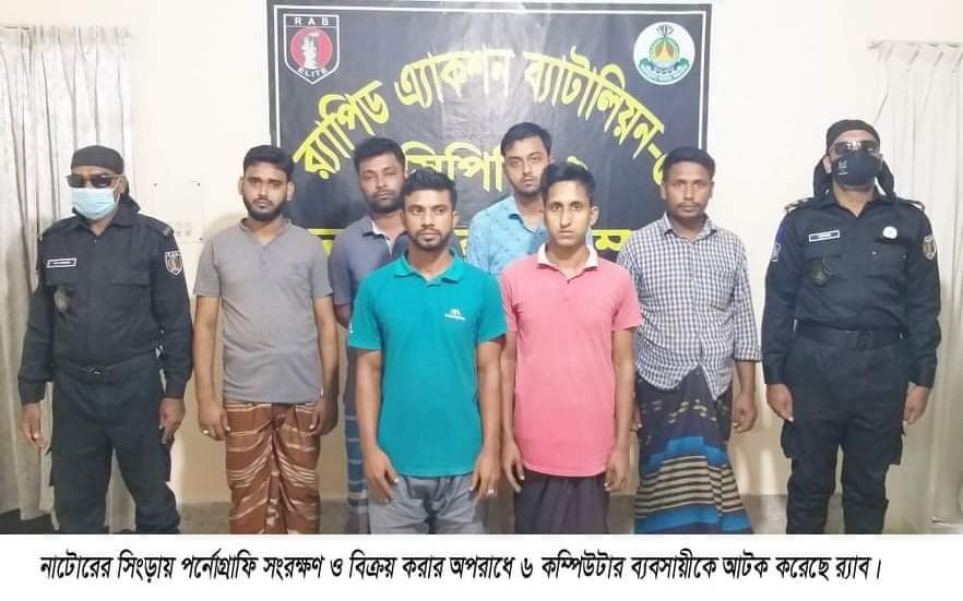 নাটোরের সিংড়ায় পর্নোগ্রাফি সংরক্ষণ ও বিক্রয় করার অপরাধে ৬ কম্পিউটার ব্যবসায়ীকে আটক করেছে র্যাব।