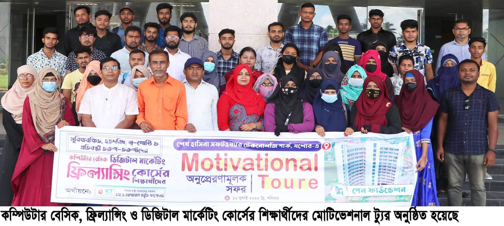 ঝিকরগাছার পেন ফাউন্ডেশন কর্তৃক বাস্তবায়িত ০৩ মাস মেয়াদী “সুবিধা বঞ্চিত, হতদরিদ্র, নৃ-গোষ্ঠী ও প্রতিবন্ধী জনগোষ্ঠীকে তথ্য ও প্রযুক্তি নির্ভর নতুন প্রজন্ম গড়ে তোলা” প্রকল্পের অধীনে কম্পিউটার বেসিক, ফ্রিল্যান্সিংও ডিজিটাল মার্কেটিং কোর্সের শিক্ষার্থীদের মোটিভেশনাল ট্যুর (অনুপ্রেরণা মূলক সফর) করানো হয়েছে। সরকারের ডাক, টেলি যোগাযোগ ও তথ্য প্রযুক্তি মন্ত্রণালয়, তথ্য ও যোগাযোগ প্রযুক্তি বিভাগের অর্থায়নে বাস্তবায়িত প্রকল্পের ৯০জন শিক্ষার্থীদের যশোর শেখ হাসিনা সফট্ওয়ার এন্ড টেকনোলজি পার্কে মোটিভেশনাল ট্যুর করানো সময় উৎসব টেকনোলজি ও এ্যাবাকাস সফট বিডি লিমিটেড এর কার্যক্রম পরিদর্শণ এবং ফ্রি-ল্যান্সিং ও ডিজিটাল মার্কেটিং বিষয়ক সেমিনার অনুষ্ঠিত হয়।