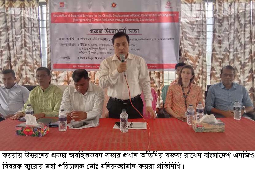 কয়রায় উত্তরণের এনআরসি প্রকল্পের উদ্বোধনী সভা ৬ মে সকাল ১০ টায় উপজেলা পরিষদের সম্মেলন কক্ষে অনুষ্ঠিত হয়।