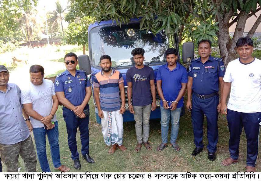 খুলনার কয়রায় গরু চোর চক্রের চার সদস্যকে গ্রেপ্তার করেছে পুলিশ।