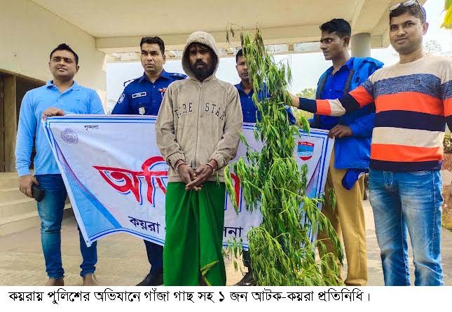 কয়রা থানার অফিসার ইনচার্জ এবিএমএস দোহা (বিপিএম) বলেন, কয়রা থানা পুলিশের মাদক বিরোধী অভিযানে তিনটি গাঁজাগাছ সহ একজন মাদক ব্যবসায়ীকে আটক করা হয়েছে। আটক ব্যক্তির বিরুদ্ধে মাদক দ্রব্য নিয়ন্ত্রণ আইনে মামলা হয়েছে। আসামীকে আদালতে প্রেরণ করা হয়েছে।