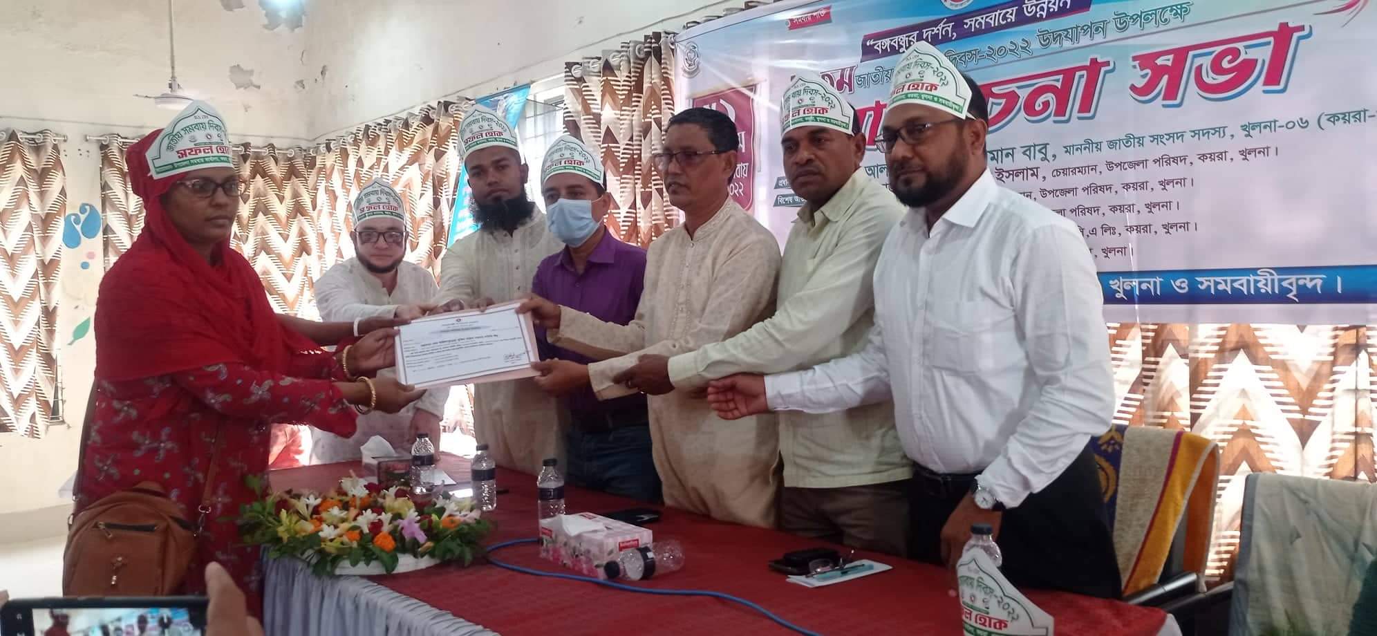 কয়রা উপজেলা ইউসিসিএ লি:-এর সভাপতি মোঃ শাহাদাৎ হোসেনের সভপতিত্বে ও প্রধান শিক্ষক এস এম নুরুল আমিন নাহিনের পরিচালনায় আলোচনা সভায় প্রধান অতিথি হিসেবে উপস্থিত থেকে বক্তব্য রাখেন, উপজেলা চেয়ারম্যান আলহাজ্ব এস এম শফিকুল ইসলাম।