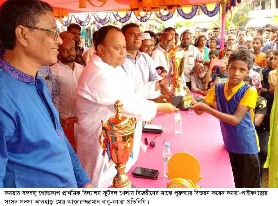 খুলনার কয়রায় বঙ্গবন্ধু গোল্ডকাপ প্রাথমিক বিদ্যালয় ফুটবল টুর্ণামেন্টের ফাইনাল খেলায় দেয়াড়া অন্তাবুনিয়া সরকারী প্রাথমিক বিদ্যালয় চ্যাম্পিয়ন ও বালাহরিচরণ মেমোরিয়াল সরকারী প্রাথমিক বিদ্যালয় রানার্স আপ হয়েছে। অন্যদিকে বঙ্গমাতা শেখ ফজিলাতুন্নেসা মুজিব গোল্ডকাপ প্রাথমিক বিদ্যালয় ফুটবল টুর্ণামেন্টের ফাইনাল খেলায় ২নং কয়রা মধ্যবিল সরকারী প্রাথমিক বিদ্যালয় চ্যাম্পিয়ন ও এস ইসলামপুর সরকারী প্রাথমিক বিদ্যালয় রানার্স আপ হওয়ার গৌরব অর্জন করে।