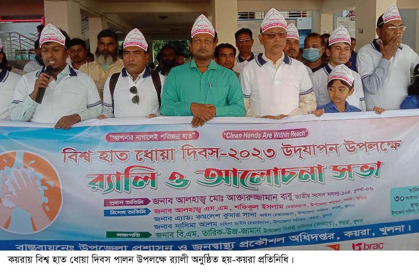 কয়রা উপজেলা প্রশাসন ও জন স্বাস্থ্য প্রকৌশল অধিদপ্তরের উদ্যাোগে বিশ্ব হাত ধােয়া দিবস পালন করা হয়েছে।