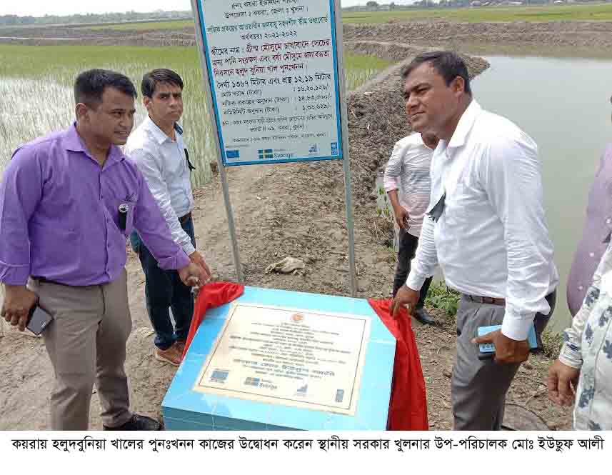 ১৭ আগস্ট বেলা ১১ টায় প্রধান অতিথি হিসেবে উপস্থিত থেকে খালের কার্যক্রম উদ্বোধন করেন, স্থানীয় সরকার খুলনার উপ-পরিচালক (উপ-সচিব) মোঃ ইউসুপ আলী। এ সময় উপস্থিত ছিলেন, উপজেলা নির্বাহী অফিসার মোঃ মমিনুর রহমান, উপজেলা সহকারী কমিশনার (ভূমি) মোঃ তারিক উজ্জামান, ইউএনডিপি ডিস্ট্রিকক্ট ক্লাইমেট ফাইন্যান্স কো-অর্ডিনেটর মোঃ আছাদুল হক, কয়রা সদর ইউনিয়নের প্যানেল চেয়ারম্যান সরদার লুৎফর রহমান, ইউপি সদস্য হরেন্দ্র নাথ সরকার, নাজমুছ সাদাত প্রমুখ। উদ্বোধন অনুষ্ঠানে জানানো হয় উক্ত খালটি খনন করায় এই এলাকার অনেক কৃষক তাদের জমিতে ২ বার ধান উৎপাদন সহ শাক-সব্জী লাগাতে পারবে।