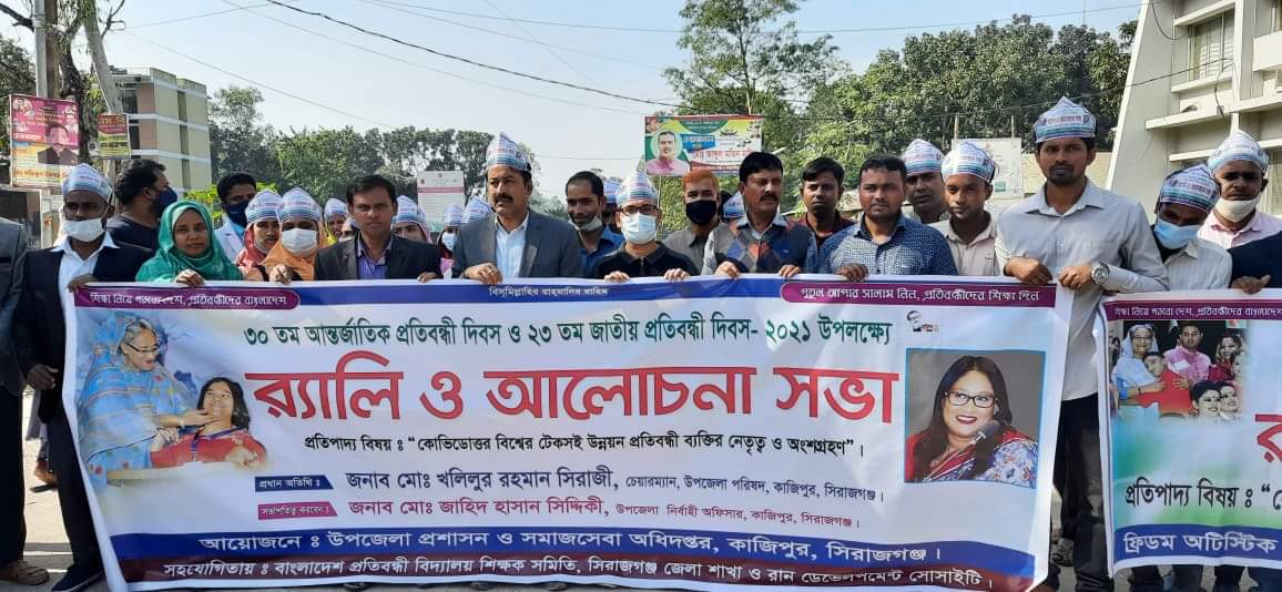 বিশ্ব জুড়ে শারীরিক ও মানসিক প্রতিবন্ধিতার শিকার মানুষের জীবনমান উন্নয়ন ও সুরক্ষার অঙ্গীকার নিয়ে সিরাজগন্জের কাজিপুরে পালিত হয়েছে ৩০তম আন্তর্জাতিক ও ২৩তম জাতীয় প্রতিবন্ধী দিবস।