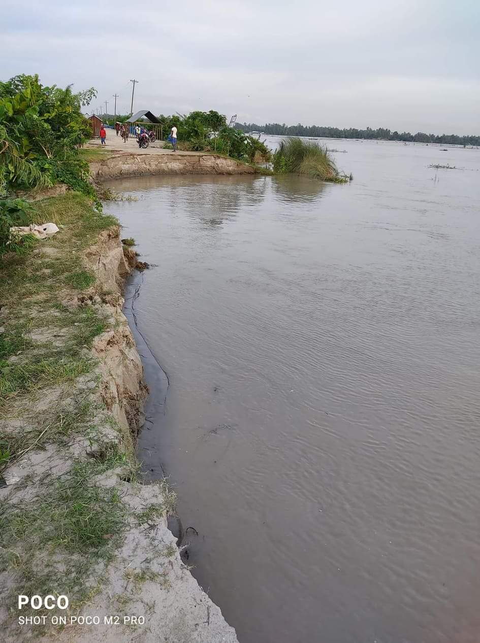 এদিকে পানি বৃদ্ধি অব্যাহত থাকায় এরই মধ্যে চরাঞ্চলের নাটুয়ারপাড়া রক্ষা বাঁধে গত মঙ্গলবার দুপুর থেকে ধস্ শুরু হয়েছে। ভাঙন শুরু হয়েছে খাসরাজবাড়ি ইউনিয়নের সানবান্দা এলাকায়। চরগিরিশ ইউনিয়নের চর ডগলাসে ও মনসুরনগর ইউনিয়নের একটি গুরুত্বপূর্ণ রাস্তার সেতুর একপাশে ধস্ দেখা দিয়েছে। বিশেষ করে নাটুয়ারপাড়া রক্ষাবাঁধে ধস্ দেখা দেয়ায় আতঙ্কে রয়েছে প্রায় পনেরটি গ্রামের অর্ধলক্ষ মানুষ।