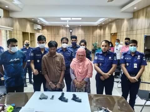 তিনি বলেন, গোপন সংবাদের ভিত্তিতে শনিবার ভোরে নড়াইলের কালিয়া উপজেলার কুলশুর গ্রামে শ্বশুর শহিদ মোল্যার বাড়ি থেকে দম্পতি হানিফ মোল্যা ও সোহানা বেগমকে আটক করা হয়। এ সময় তাদের স্বীকারোক্তি মোতাবেক ঘরের মেঝেতে লুকিয়ে রাখা একটি চায়না পিস্তল ও দেশি তৈরি দু’টি শুটারগান উদ্ধার করা হয়। হানিফ পাশের বেন্দারচর গ্রামের বাবু মোল্যার ছেলে।