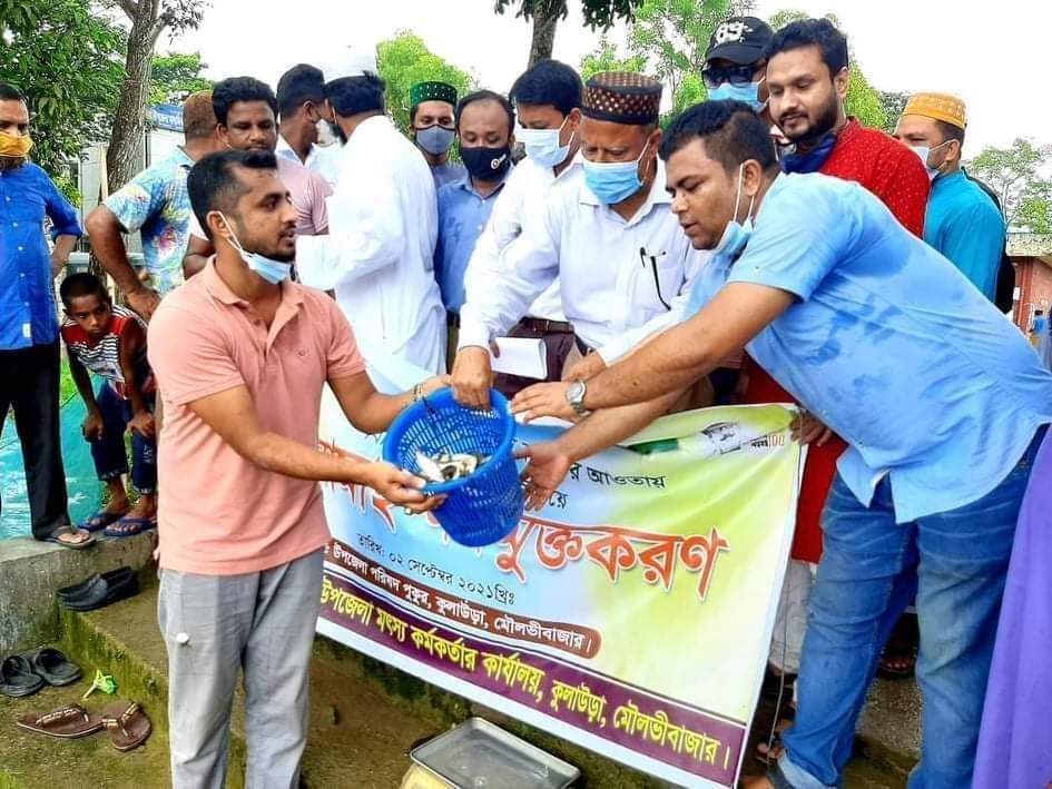কুলাউড়ায় ৪১ টি প্রাতিষ্ঠানিক পুকুরে জাতীয় মৎস্য সপ্তাহ-২০২১ উপলক্ষ্যে চারশত ২৭ কেজি পোনামাছ অবমুক্ত করে মৎস্য উপকরণ বিতরণ করা হয়েছে।