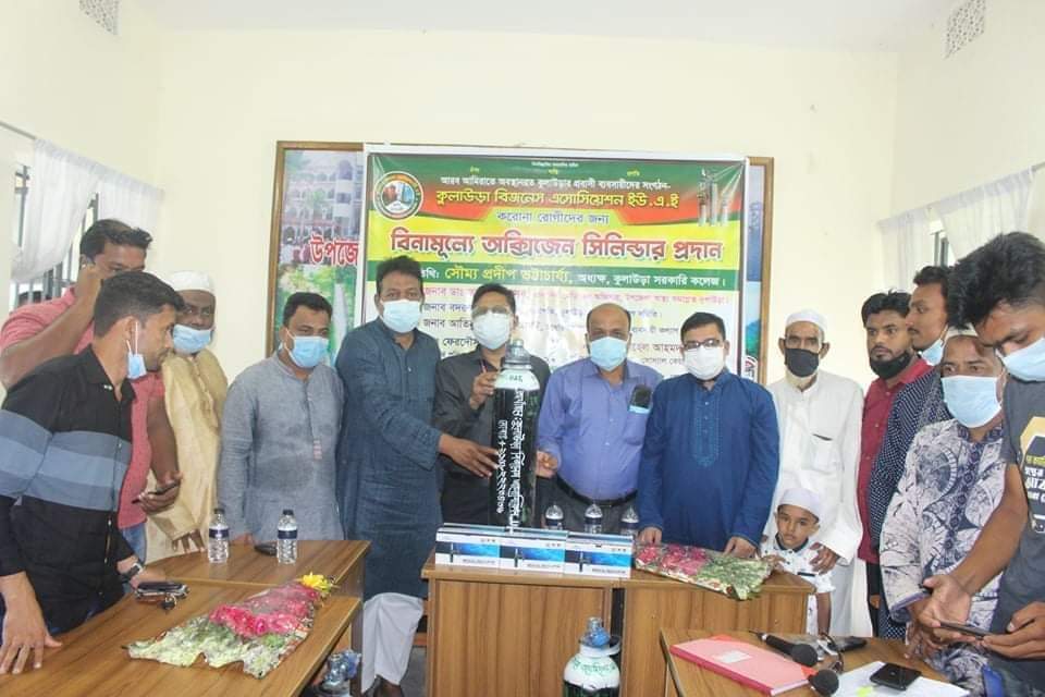 করোনা ভাইরাসের প্রাদুর্ভাবে আক্রান্ত রুগিদের বিনামূল্যে অক্সিজেন সেবা প্রদানের অক্সিজেন সিলিন্ডার বিতরণ কর্মসূচিতে এগিয়ে আদলো কুলাউড়া বিজনেস এসোসিয়েশন ইউ.এ.ই।