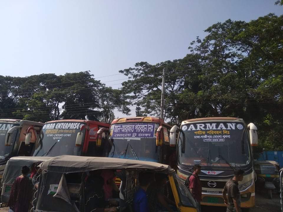 জ্বালানী তেলের মূল্য বৃদ্ধির প্রেক্ষিতে পরিবহণের ভাড়া বাড়িয়ে নির্ধারণের দাবীতে ডকাকা ধর্মঘট সফলভাবে পালিত হচ্ছে বাগেরহাটের সকল রুটে। এই ধর্মঘটে সবচেয়ে বেশি পালিত হচ্ছে মোংলায়।ধর্মঘটের ফলে জেলার সকল রুটে যাত্রীবাহী বাস এবং পণ্যবাহী ট্রাক চলাচল বন্ধ রয়েছে।গতকাল শুক্রবার ভোর থেকে বাগেরহাট-খুলনা,বাগেরহাট-ঢাকা, মোংলা থেকে ঢাকা-চট্রগ্রাম, মোংলা-খুলনা, মোংলা-বাগেরহাট-বরিশালসহ সকল রুটে বাস চলাচল সম্পূর্ণ বন্ধ রেখেছে মালিক-শ্রমিকেরা। ফলে মোংলা বন্দর থেকে ভিন্ন পরিবহণে বিকল্প ব্যবস্থায় বাগেরহাট-খুলনা যেতে গুনতে হচ্ছে অতিরিক্ত ভাড়া, এতে ক্ষুব্দ সাধারণ যাত্রীরা,একশ টাকার ভাড়ার পরবিবর্তে অনেক ক্ষেত্রে যাত্রীদের ঘুনতে হচ্ছে তিনশ থেকে চারশ টাকা।