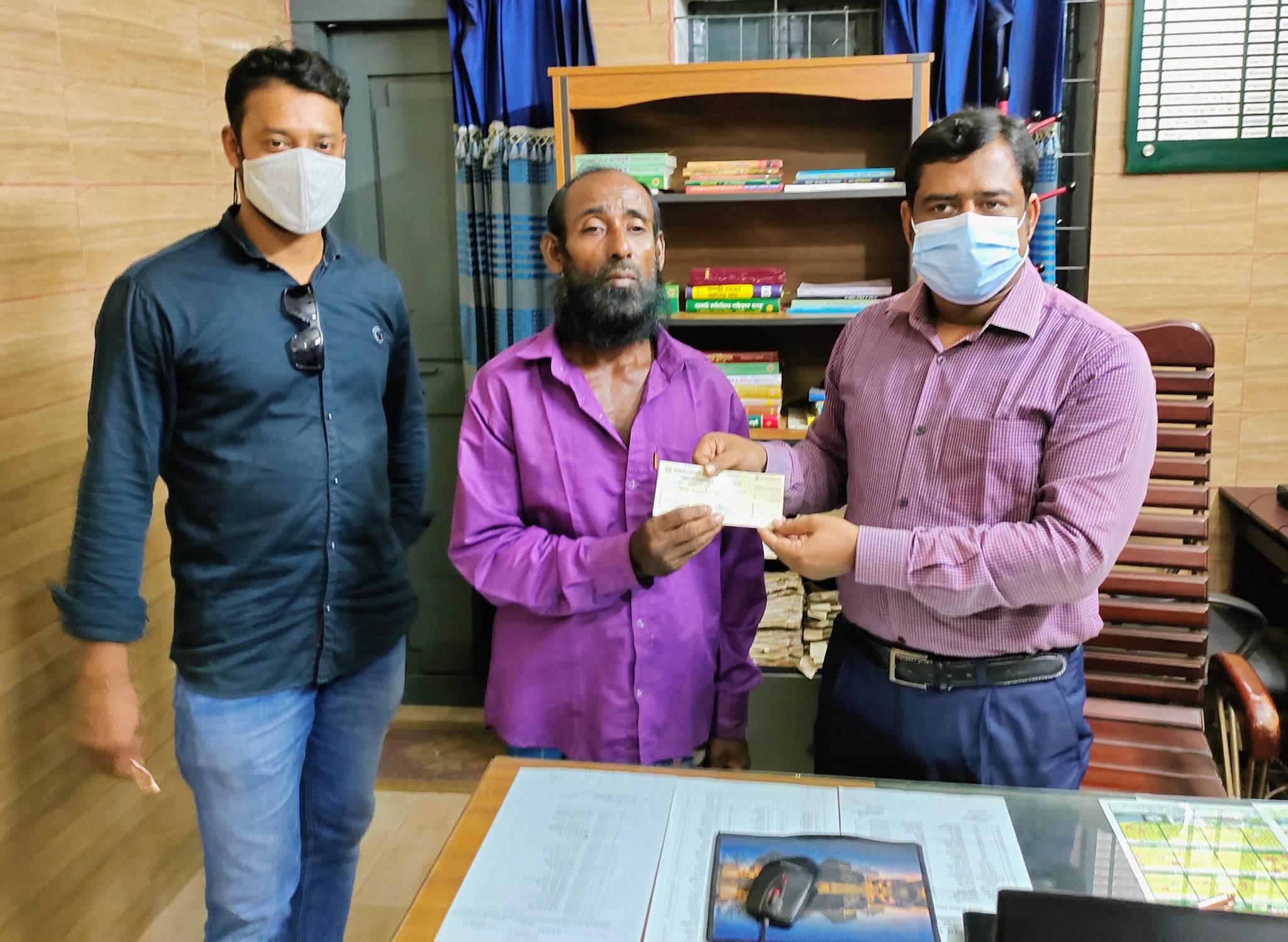 বুধবার সকালে উপজেলা নির্বাহী অফিসারের কার্যালয়ে দুর্যোগ ব্যবস্থাপনা অধিদপ্তরের পক্ষ থেকে শিশুর পিতা হযরত আলীর নিকট অনুদানের চেক তুলে দেন উপজেলা নির্বাহী অফিসার এমএম আরাফাত হোসেন।