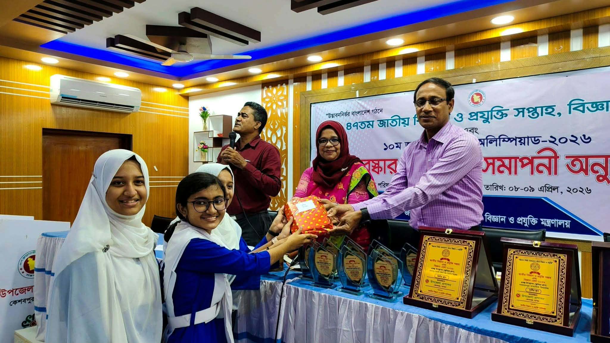 বৃহস্পতিবার (৯ এপ্রিল-২৬) সকালে ছিল ১০ ম বিজ্ঞান বিষয়ক কুইজ প্রতিযোগিতা এবং বিকেলে উপজেলা পরিষদের হল রুমে সমাপনী ও পুরস্কার বিতরণী অনুষ্ঠান অনুষ্ঠিত হয়। অনুষ্ঠানে সভাপতিত্ব করেন এবং নিজ হাতে পুরস্কার বিতরন করেন, কেশবপুর উপজেলা নির্বাহী অফিসার রেকসোনা খাতুন।