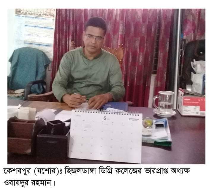 কেশবপুরের ঐতিহ্যবাহী হিজলডাঙ্গা শহীদ ফ্লাইট লেঃ মাসুদ মেমোরিয়াল ডিগ্রী কলেজের ভারপ্রাপ্ত অধ্যক্ষের দায়িত্ব পেলেন ওই কলেজের গণিত বিভাগের সিনিয়র প্রভাষক ওবায়দুর রহমান।