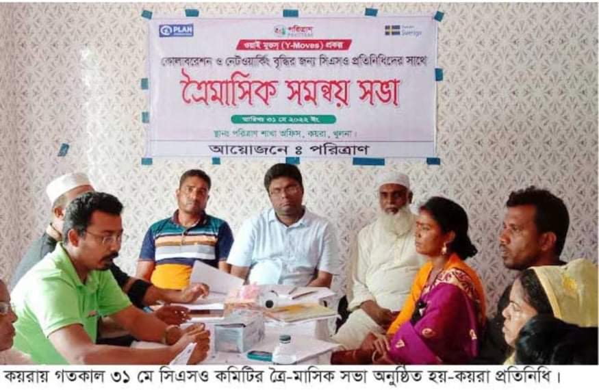 বেসরকারী উন্নয়ন সংগঠন পরিত্রাণের উদ্যোগে ও দাতা সহযোগী সুইডিস ইন্টারন্যাশনাল ডেভলপমেন্ট কো-অপারেশন এজেন্সি-সিডা এর অর্থায়নে এবং প্ল্যান ইন্টারন্যাশনাল বাংলাদেশ এর কারিগরী সহযোগীতায় ওয়াই-মুভস প্রকল্পের বাস্তবায়নে এ ত্রৈমাসিক সভায় সংগঠনের বিভিন্ন বিষয় নিয়ে আলোচনা করেন উপস্থিত সদস্যরা।