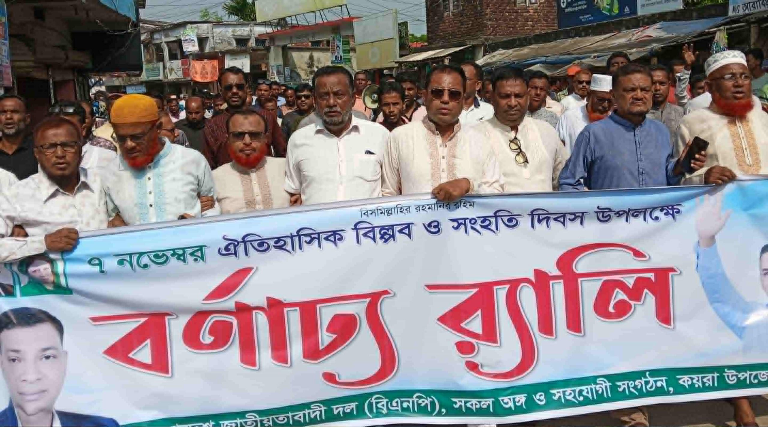 কয়রা উপজেলা বিএনপির উদ্যোগে ৭ নভেম্বর ঐতিহাসিক জাতীয় বিপ্লব ও সংহতি দিবস পালন উপলক্ষে র্যালী ও আলোচনা সভা অনুষ্ঠিত হয়েছে।