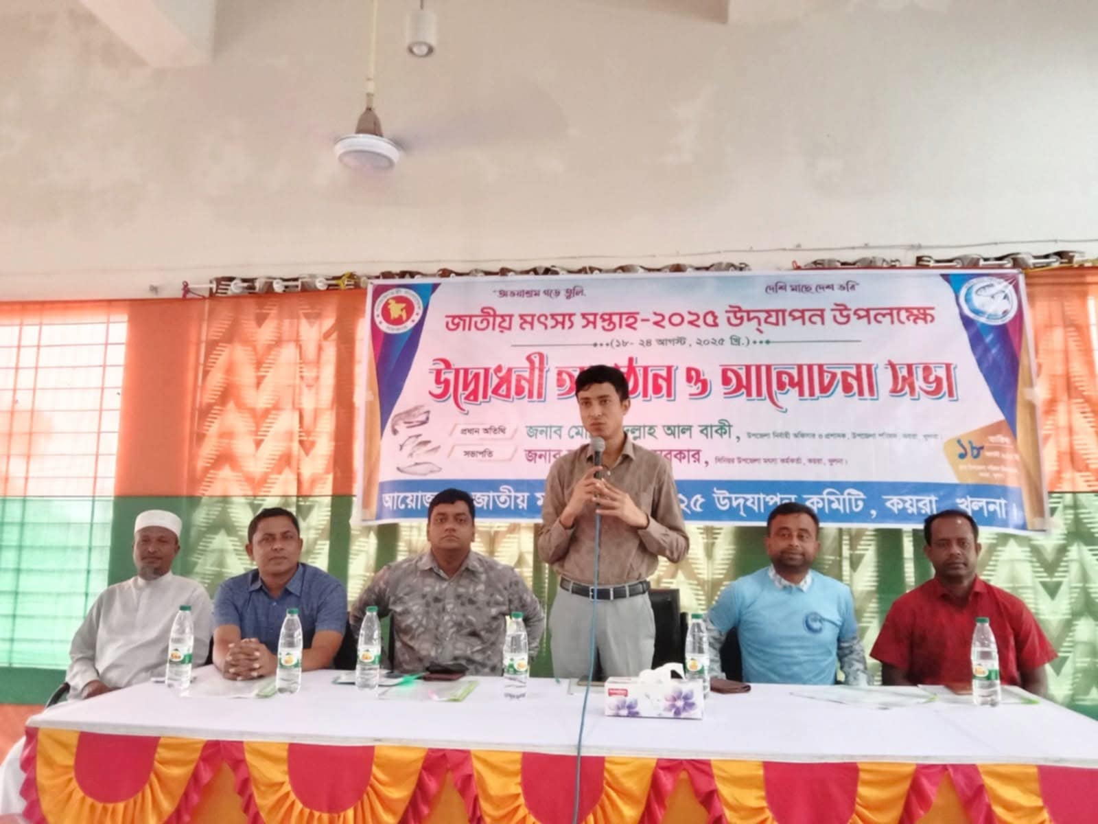 ১৮ আগস্ট সোমবার সকাল ১০ টায় কয়রা সদরে র্যালী শেষে উপজেলা পরিষদ মিলনায়তনে আলোচনা সভা অনুষ্ঠিত হয়। সিনিয়র উপজেলা মৎস্য অফিসার সমীর কুমার সরকারের সভাপতিত্বে আলোচনা সভায় প্রধান অতিথির বক্তব্য রাখেন উপজেলা নির্বাহী অফিসার মোঃ আব্দুল্লাহ আল বাকী। উপজেলা মৎস্য অফিসের মেরিন ফিশারিজ অফিসার সুবির কুমার দত্তের পরিচালনায় আলোচনা সভায় আরো বক্তব্য রাখেন, উপজেলা কৃষি অফিসার সঞ্জয় কুমার সরকার, উপজেলা মাধ্যমিক শিক্ষা অফিসার মোঃ আবুল কালাম আজাদ, উপজেলা জামায়াতের আমির মাওলানা মিজানুর রহমান, কয়রা উপজেলা প্রেসক্লাবের সভাপতি মোঃ শরিফুল আলম, খুলনা জেলা বিএনপির সদস্য এম এ হাসান, এনজিও প্রতিনিধি মোস্তাক মাহমুদ, মৎস্য চাষি রাসেল আহমেদ, রিপন হোসেন, কবি আঃ রাজ্জাক মদিনাবাদী প্রমুখ।