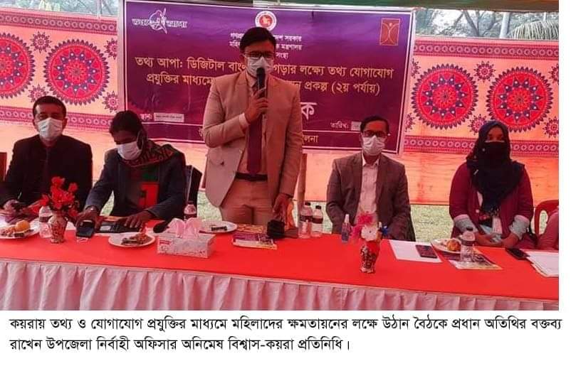 কয়রা উপজেলায় ডিজিটাল বাংলাদেশ গড়ার লক্ষ্যে তথ্য ও যোগাযোগ প্রযুক্তির মাধ্যমে মহিলাদের ক্ষমতায়ণ এবং বাল্যবিবাহ ও নারী নির্যাতন প্রতিরোধে উঠান বৈঠক অনুষ্ঠিত হয়।