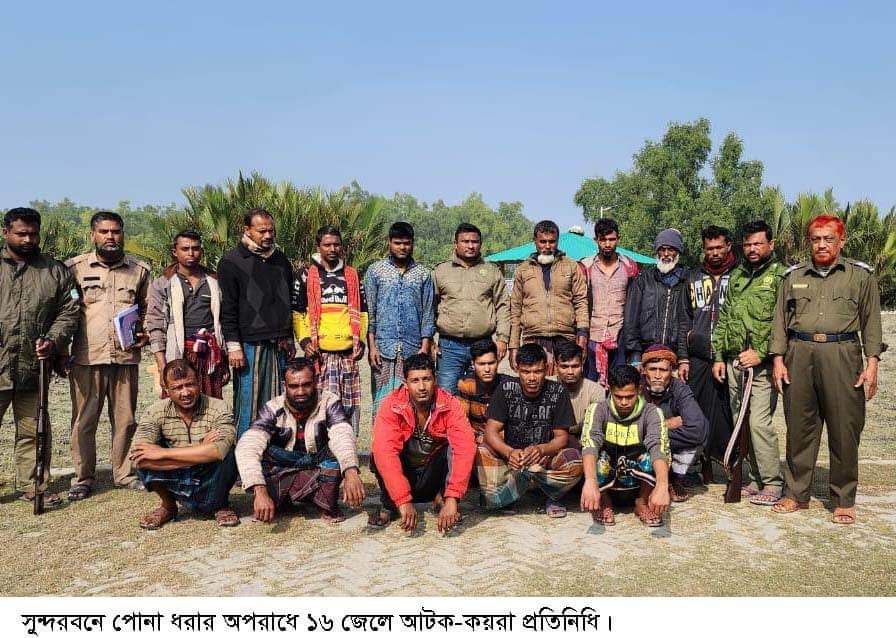 সুন্দরবন পশ্চিম বন বিভাগের নীলকোমল বন টহল ফাঁড়ীর অধিনস্থ বঙ্গবন্ধুর চর এলাকায় অভিযান চালিয়ে নিষিদ্ধ পারশে মাছের পোনা ধরার অপরাধে দুটি ইঞ্জিন চালিত ট্রলার সহ ১৬ জেলে আটক করেছে বন বিভাগ।