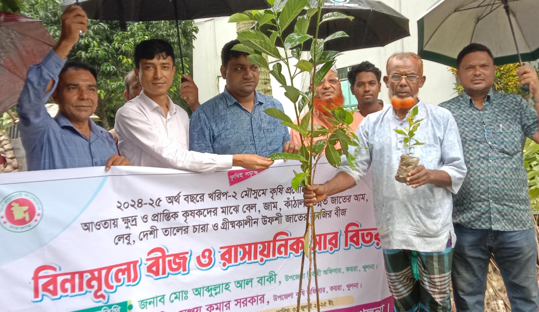 কয়রা উপজেলা কৃষি অফিসের উদ্যোগে বিভিন্ন প্রজাতির গাছের চারা ও কৃষকদের মাঝে সার ও বীজ বিতরণ করা হয়েছে।