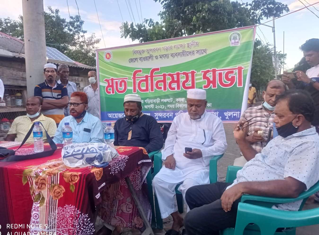 খুলনার কয়রা উপজেলার সদর ইউনিয়নের ৬নং কয়রা গড়িয়াবাড়ী লঞ্চঘাট বাজারে বিষমুক্ত সুন্দরবন গড়ার লক্ষ্যে স্থানীয় জেলে বাওয়ালী ও মৎস্য ব্যাবসায়ীদের সাথে মতবিনিময় সভা অনুষ্ঠিত হয়।