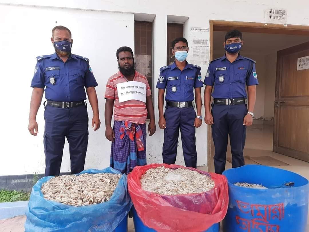 সুন্দরবন থেকে অবৈধভাবে বিষ প্রয়ােগ করা এ সকল মাছ ধরার পর কয়রা বাজারের মৎস্য কাটায় বিক্রি করতে নিয়ে যাওয়ার পথে পুলিশ তাকে আটক করে।