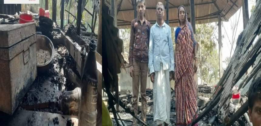 স্ত্রী ও একটি নাবালক ছেলে সন্তানকে নিয়ে কোনরকম সংসার টা চলছিলো। তার নিজ স্ত্রীকেও অন্যের বাড়ীতে কাজ করতে হচ্ছিল এই অবস্থায় তার সংসার চলছিল। এমনই অবস্থার মধ্যে গত ১০তারিখ রাত আনুমানিক ১০ টার দিকে বৈদ্যুতিক দুর্ঘটনায়, পরিবারের সব কিছু পুড়ে ভস্মীভূত।