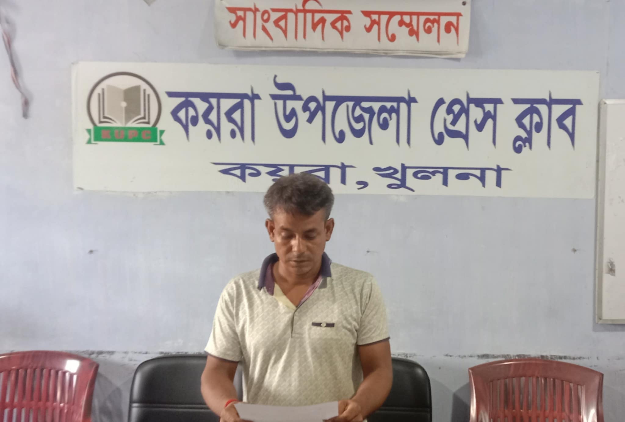 ১০ আগস্ট রবিবার বেলা ১১ টায় কয়রা উপজেলা প্রেসক্লাবে সংবাদ সম্মেলনে লিখিত বক্তব্যে তিনি জানান, গত ৯ আগস্ট ১নং কয়রা গ্রামের কামরুল ইসলাম ঢালীর পুত্র সাজেদুল ইসলাম সংবাদ সম্মেলনের মাধ্যমে আমি সহ আরও ৪ জনের বিরুদ্ধে যে সকল অভিযোগ করেছে তা সম্পূর্ন মিথ্যা ভিত্তীহিন ও বানোয়াট।