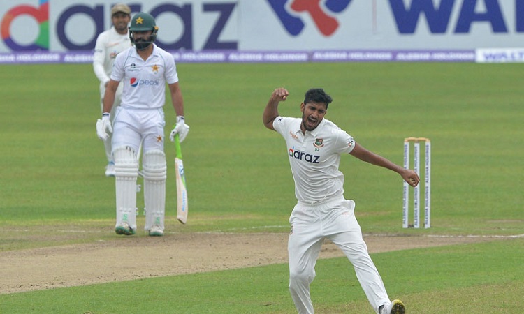 চতুর্থ দিনের শুরুতেই বাংলাদেশকে আনন্দে ভাসালেন এবাদত হোসেন ও খালেদ আহমেদ। ফেরালেন সেট ব্যাটার আজহার আলিকে। আকাশে মেঘ, উইকেটে ময়েশ্চারকে কাজে লাগাতে দুই দিক থেকেই আনা হয়েছিল পেসার। আজহার আলির পরেই ৭৬ রান করা বাবরকে সাজঘরে ফেরান খালেদ আহমেদ।