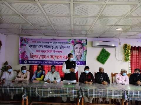 মুন্সিগঞ্জর গজারিয়া উপজেলা জাতির পিতা বঙ্গবন্ধু শেখ মুজিবুর রহমানের সহধর্মিনী বঙ্গমাতা বেগম ফজিলাতুন্নেছা মুজিব এর ৯১তম জন্মবার্ষিকী উপলক্ষ্যে উপজেলা আওয়ামী লীগের উদ্যোগে বিশেষ দোয়া,আলোচনা সভা,অস্থায়ী প্রতিকৃতিতে পুষ্পার্ঘ্য অর্পণ এর মাধ্যমে শ্রদ্ধা নিবেদন।