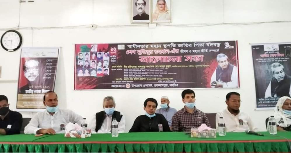 এরপর উপজেলা পরিষদ মিলনায়তনে এক আলোচনা সভা অনুষ্ঠিত হয়। এসময় উপস্থিত ছিলেন, উপজেলা নির্বাহী কর্মকর্তা মো. তমাল হোসেন, বীর মুক্তিযোদ্ধাগণ, উপজেলা চেয়ারম্যান মো. আনোয়ার হোসেন, সহকারি কমিশনার (ভূমি) মো. আবু রাসেল, পৌর মেয়র শাহনেওয়াজ আলী, পৌর আ’লীগের সভাপতি মো. জাহিদুল ইসলাম, উপজেলা পরিষদের ভাইস চেয়ারম্যান মো. আলাল শেখ, মহিলা ভাইস চেয়ারম্যান রোকসানা আক্তার লিপি, মহিলা বিষয়ক কর্মকর্তা নিলুফা ইয়াসমিন রাজশাহা বিশ্ব বিদ্যালয়ের সাবেক সভাপতি আহম্মদ আলী মোল্লা প্রমূখ।
