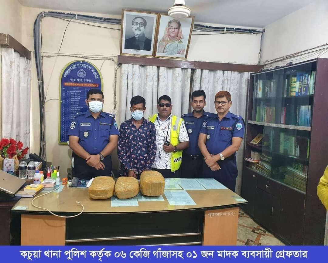 চাঁদপুরের কচুয়ায় ৬ কেজি গাঁজাসহ আশ্রাফ বেপারী নামে একজনকে আটক করেছে কচুয়া থানা পুলিশ। ৯ সেপ্টেম্বর বৃহস্পতিবার সকালে গোপন সংবাদের ভিত্তিতে কচুয়া থানার এসআই মামুনুর রশিদ সরকার সঙ্গীয় ফোর্স নিয়ে উপজেলার জগতপুর বাজারে অভিযান চালিয়ে গাজাঁসহ তাকে আটক করা হয়।