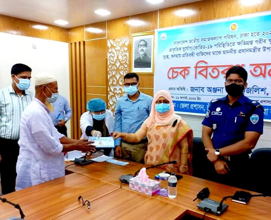 ১২ আগস্ট বেলা ১১ টায় চাঁদপুর জেলা প্রশাসক সম্মেলন কক্ষে সমাজসেবা অধিদপ্তরের আযোজনে প্রধানমন্ত্রীর উপহারের চেক বিতরণ অনুষ্ঠান সম্পন্ন হয়। এতে প্রধান অতিথি হিসেবে অনুষ্ঠানে উপস্থিত ছিলেন চাঁদপুরের মান্যবর জেলা প্রশাসক অঞ্জনা খান মজলিশ।
