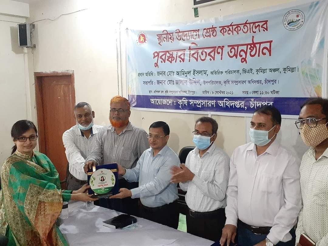 ৯ সেপ্টেম্বর বৃহস্পতিবার বিকেলে কৃষি সম্প্রসারণ অধিদপ্তর চাঁদপুর উপ-পরিচালকের কার্যালয়ে আনুষ্ঠানিকভাবে এ পুরস্কার গ্রহণ করেন তিনি।
