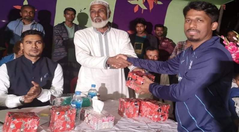 খেলা শেষে পুরস্কার বিতরন করেন, ইউপি সদস্য নাছির আহম্মেদ শেখ,